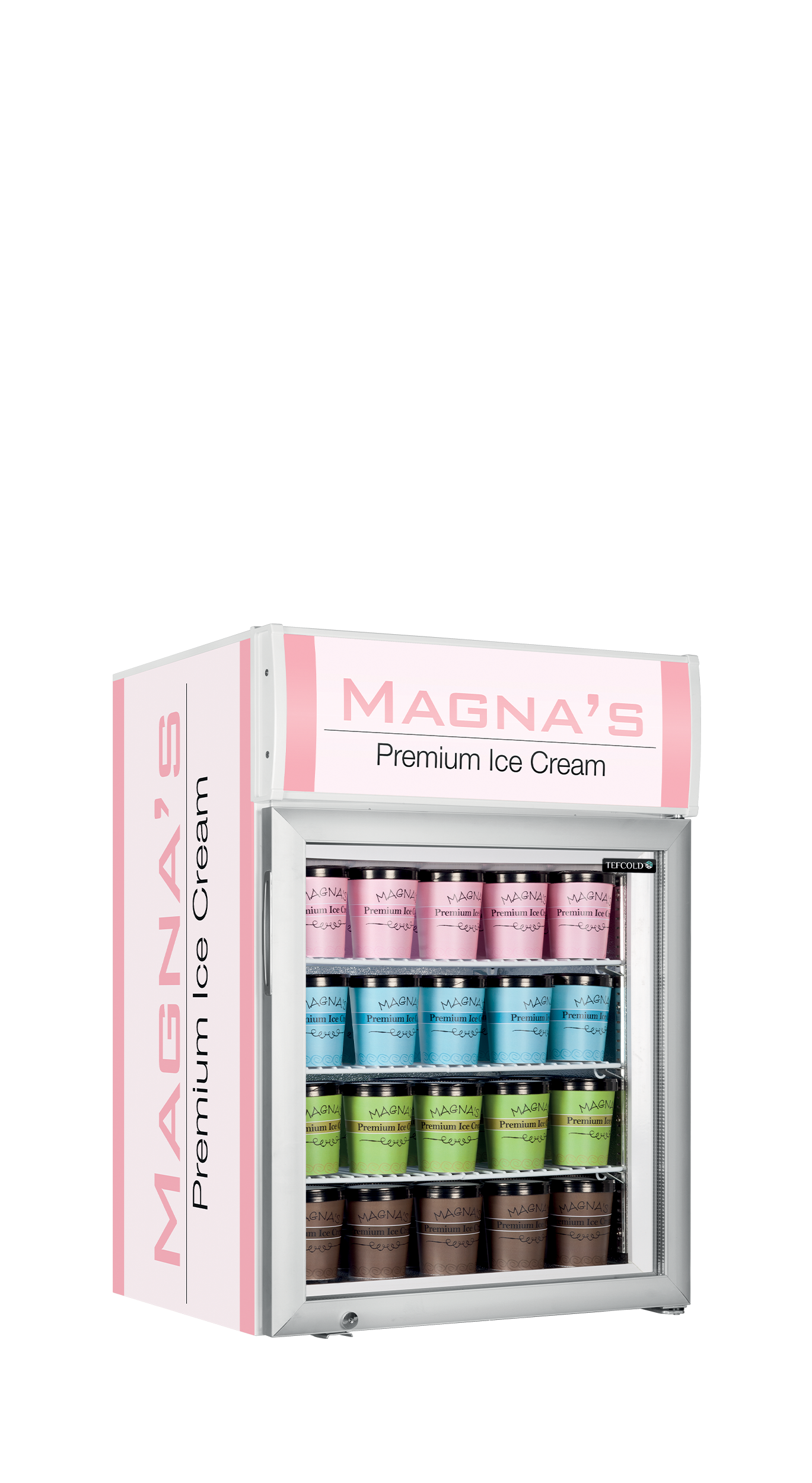 Řada stolních mrazicích skříní UF-GCP se dodává s reklamním panelem s LED osvětlením, který pomůže přitáhnout pozornost zákazníků. Snadno ji přizpůsobíte svým požadavkům, protože má nastavitelné police a nožky. Umístěte mrazicí skříň na pult, abyste podpořili impulzivní prodej.