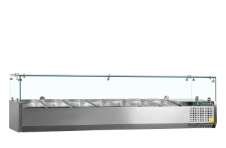 Řada chladicích nástaveb VK33 je skvělým doplňkem gastro pultů, protože vám umožňuje mít na dosah vše, co potřebujete k přípravě jídla. Je vhodná pro gastronádoby GN1/4 x 150 mm (nejsou součástí). VK33-120: 5 x GN 1/4 VK33-150: 7 x GN 1/4 VK33-160: 7 x GN 1/4 VK33-180: 9 x GN 1/4 VK33-200: 10 x GN 1/4Teplotní rozsah: | +2 až +10°C |