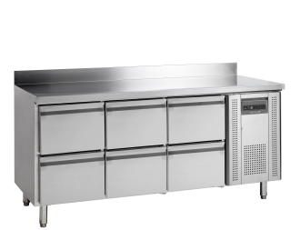 Řada chladicích stolů CK z nerezové oceli SS304 je určena pro profesionální kuchyně, a proto má rozměry GN1/1. Stoly jsou k dispozici v několika velikostech a můžete si vybrat mezi plnými dvířky a zásuvkami. Dále máte výběr mezi modely s odnímatelnou horní deskou se zadní deskou, nebo bez ní. Všechny mají ventilované chlazení, které zajišťuje rovnoměrnou a stálou teplotu.