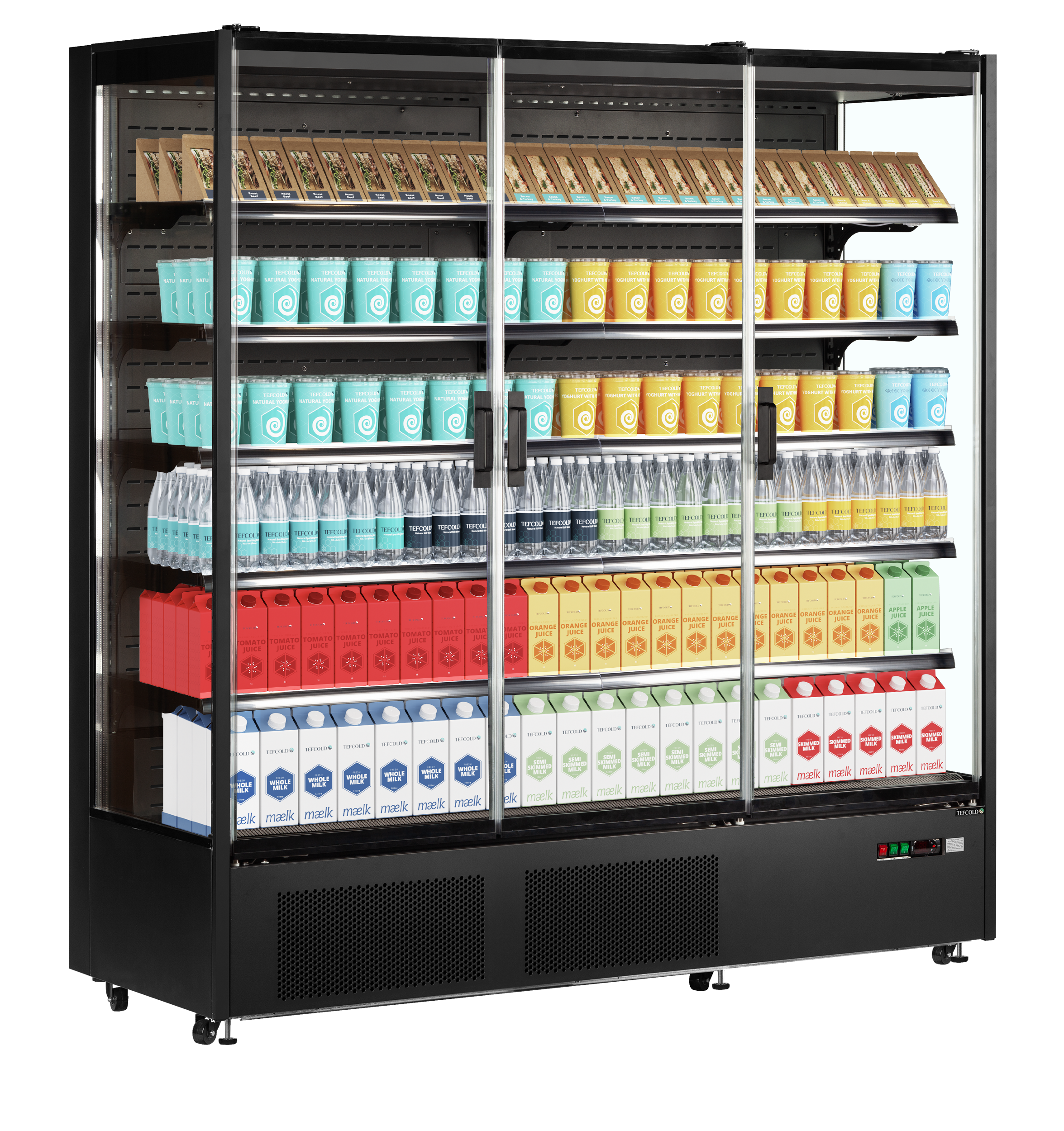 Řada přístěnných chladicích vitrín PC nabízí prostorné řešení chlazení s nízkou spotřebou energie. Dodává se se dvěma, třemi nebo čtyřmi bezrámovými prosklenými křídlovými dveřmi a také s prosklenými bočními stěnami pro optimální viditelnost výrobků. Prostor uvnitř vitríny je krásně nasvícen díky LED osvětlení v porní části a také pod každou policí. Vitríny PC jsou skvělou volbou pro supermarkety a obchody se smíšeným zbožím.
