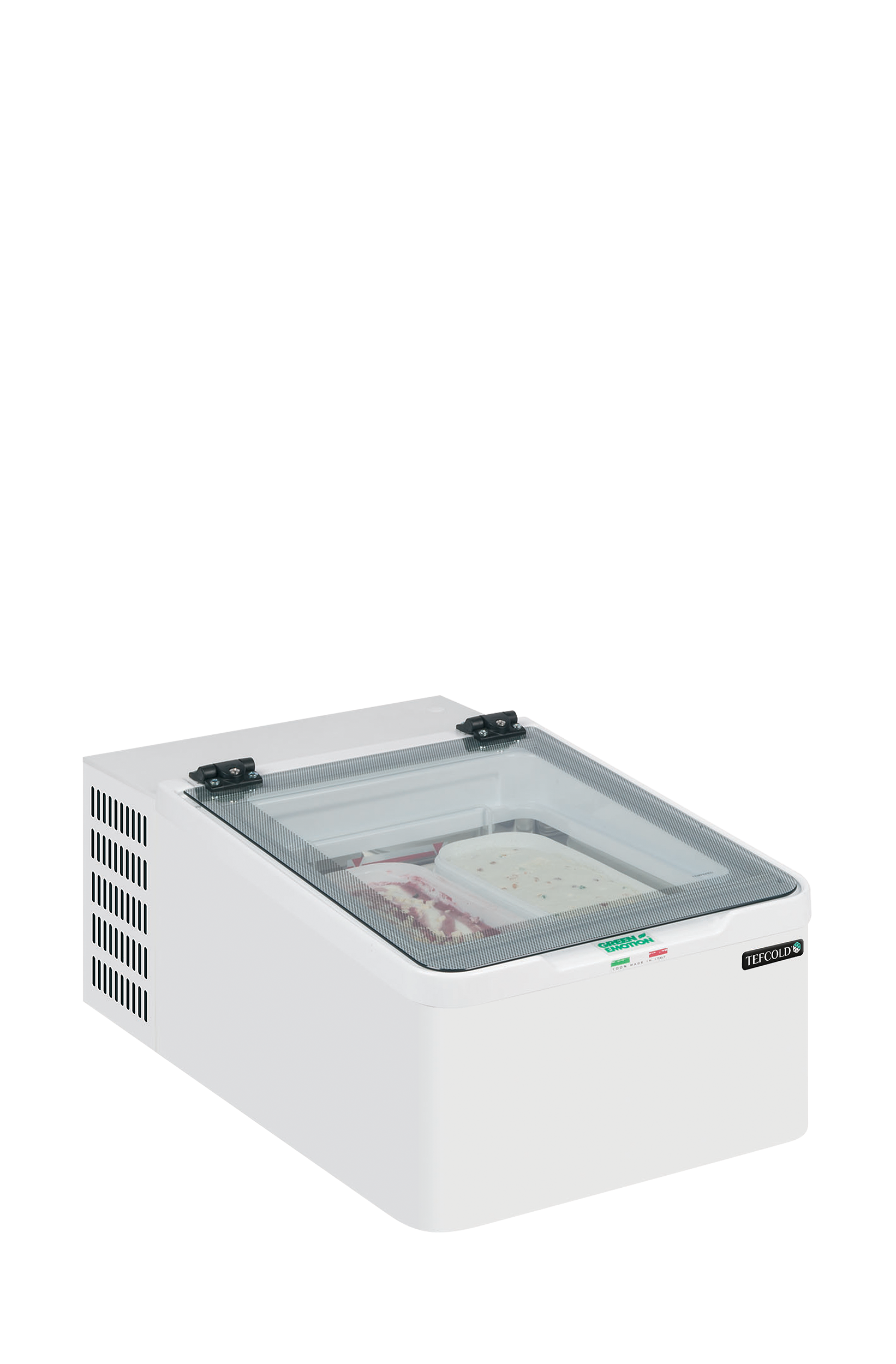Řada TEFCOLD ICE je ideální pro podniky s omezeným prostorem, které však chtějí maximalizovat prodej kopečkové zmrzliny. Distributor zmrzliny ICE je navržen pro pohodlné umístění na pracovní desku či pult a je k dispozici v konfiguraci se dvěma nebo třemi vaničkami. Na vyžádání je možné objednat také vyvýšený podstavec a zásobník na nanuky.