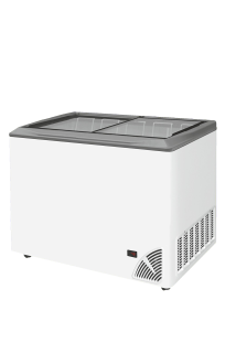 ARO 401/2 Grey Edge Pultová mraznička prosklené rovné víkoPultová mraznička s posuvným rovným víkem a digitálním termostatem s teploměrem