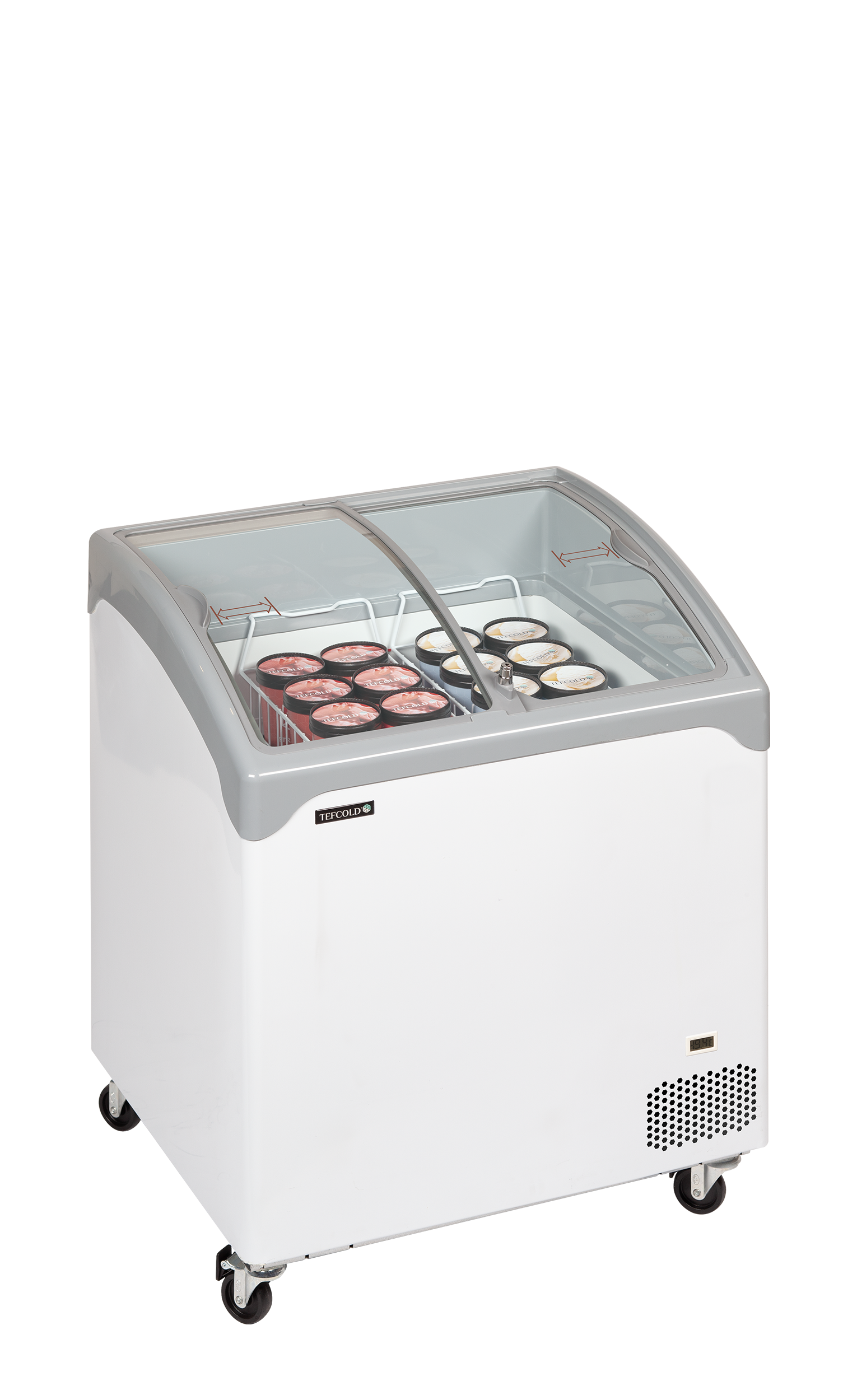 Prémiová řada pultových mrazniček NIC-SCEB má skvělý design se zaoblenými šedými rohy a hranami a oblými posuvnými prosklenými víky. Má velmi stabilní a pevnou konstrukci a navíc je vybavena kolečky, takže s ní lze snadno manipulovat a přesouvat ji po provozovně. Mraznička se skvěle hodí k vystavování mražených potravin včetně zmrzliny. Dodává se s kompletní sadou košů, nejmenší model NIC 101 SCEB obsahuje systém dělících přepážek.