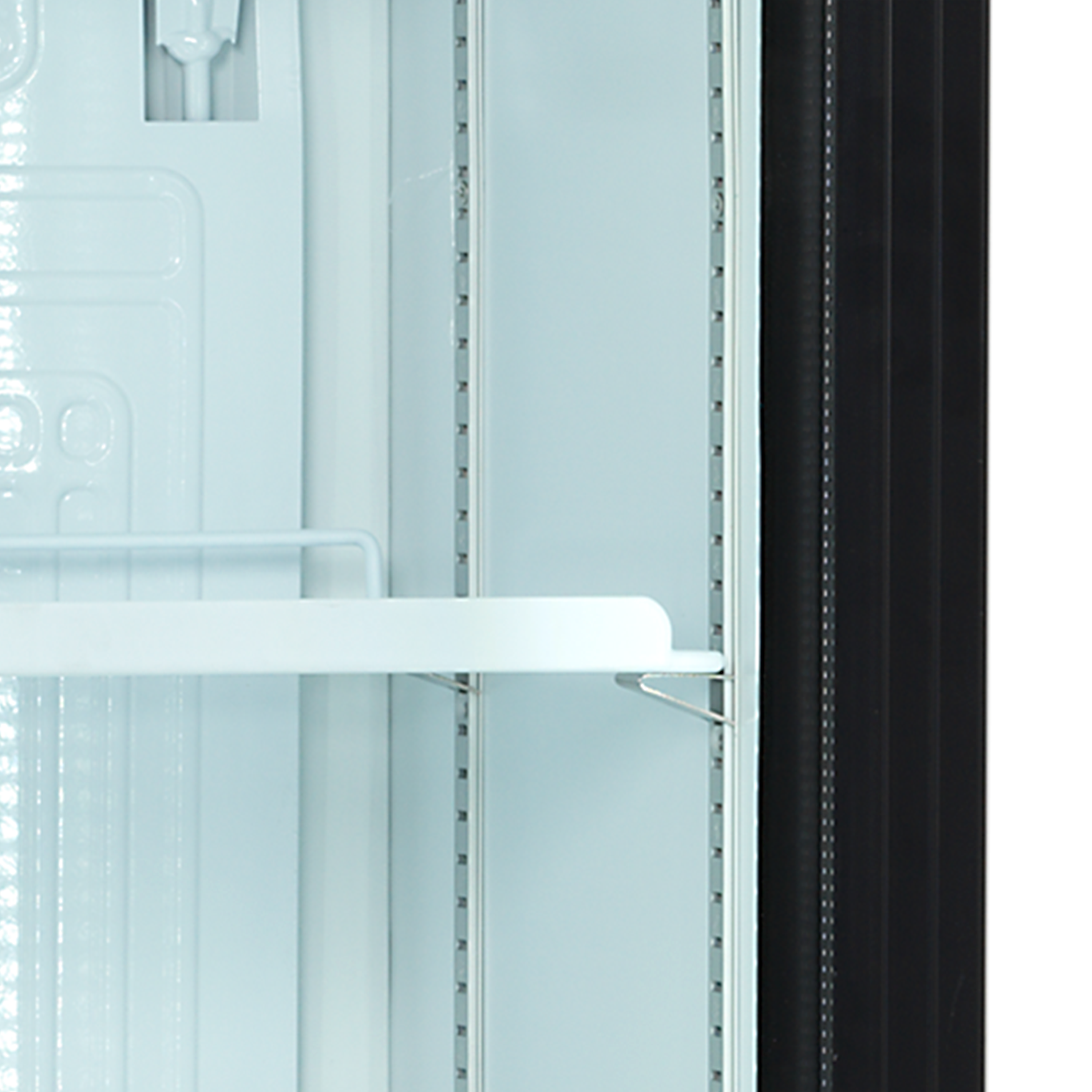 Řada FSC Slim nabízí vynikající kvalitu provedení za příznivou cenu. Úzký model má prosklené dveře a je k dispozici v bílé nebo černé barvě. Získáte možnost skvělé prezentace produktů v kombinaci s výkonným chladicím systémem a nastavitelnými policemi umožňujícími flexibilitu. Chladicí vitrína je ideální pro prezentaci značky a díky osvětlenému reklamnímu panelu v horní části jistě upoutá pozornost zákazníků.