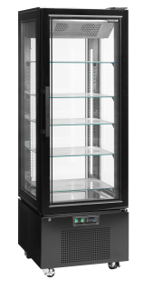 Mrazicí vitrína TEFCOLD UPD 400 F Black má všechny čtyři strany prosklené s dvojitým izolačním sklem, což zajišťuje vynikající prezentaci vystavených produktů. Má také bezrámové dveře s vyhřívaným rámem. Výšku mezi skleněnými policemi je možné změnit dle potřeby. Vitrína je skvělá např. pro prezntaci zmrzlinových pohárů a jiných mražených pochutin.