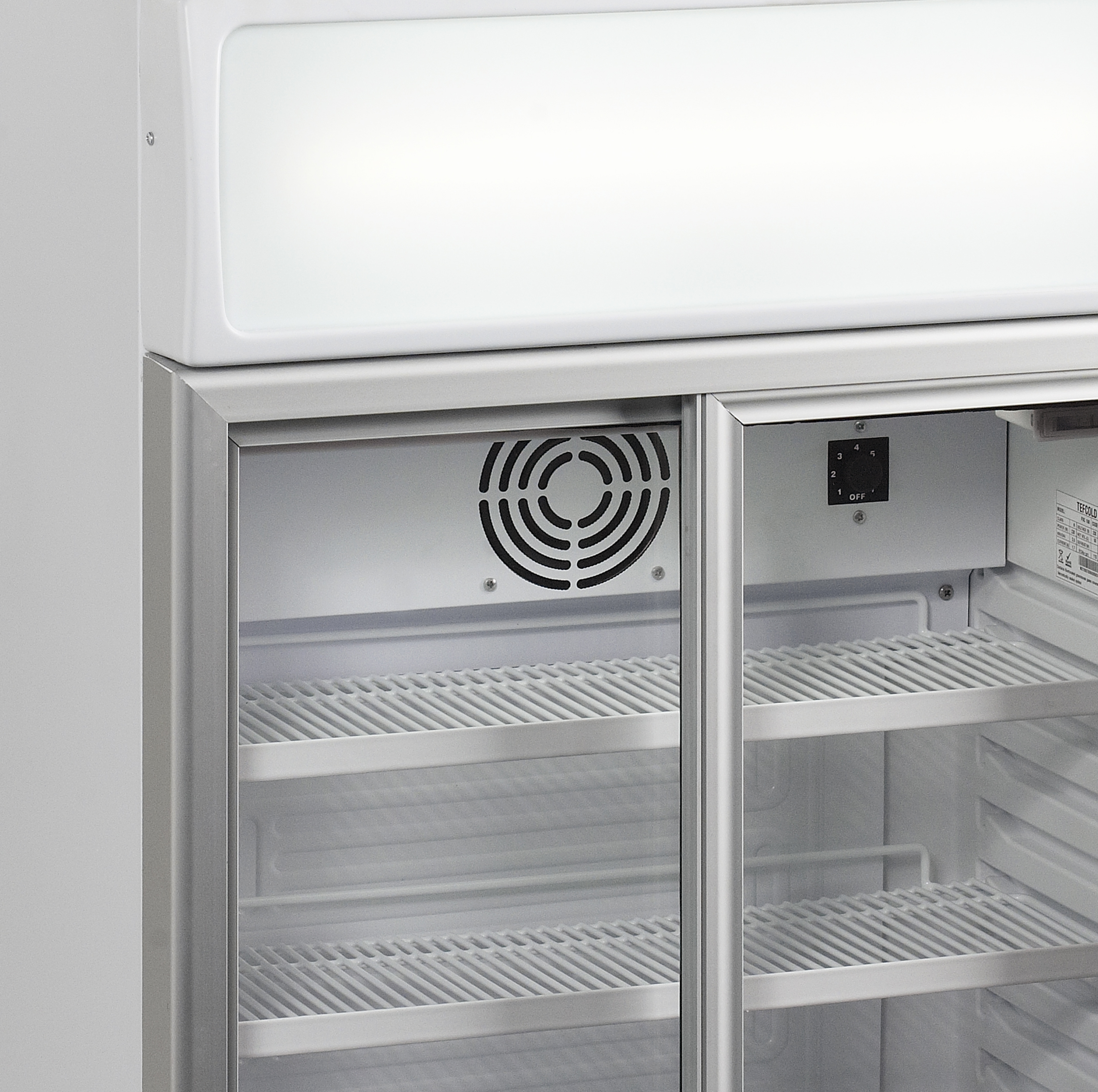 Řada FSC stolních zařízení nabízí vynikající kvalitu provedení za příznivou cenu. Chladicí skříň s proskleným posuvnými dveřmi je ideální pro prezentaci značky a díky světelnému reklamnímu panelu v horní části jistě upoutá pozornost zákazníků. Díky svým malým rozměrům je ideální jako stolní chladicí prodejní zařízení nebo k zavěšení na zeď (dodává se s konzolami pro zavěšení na zeď).