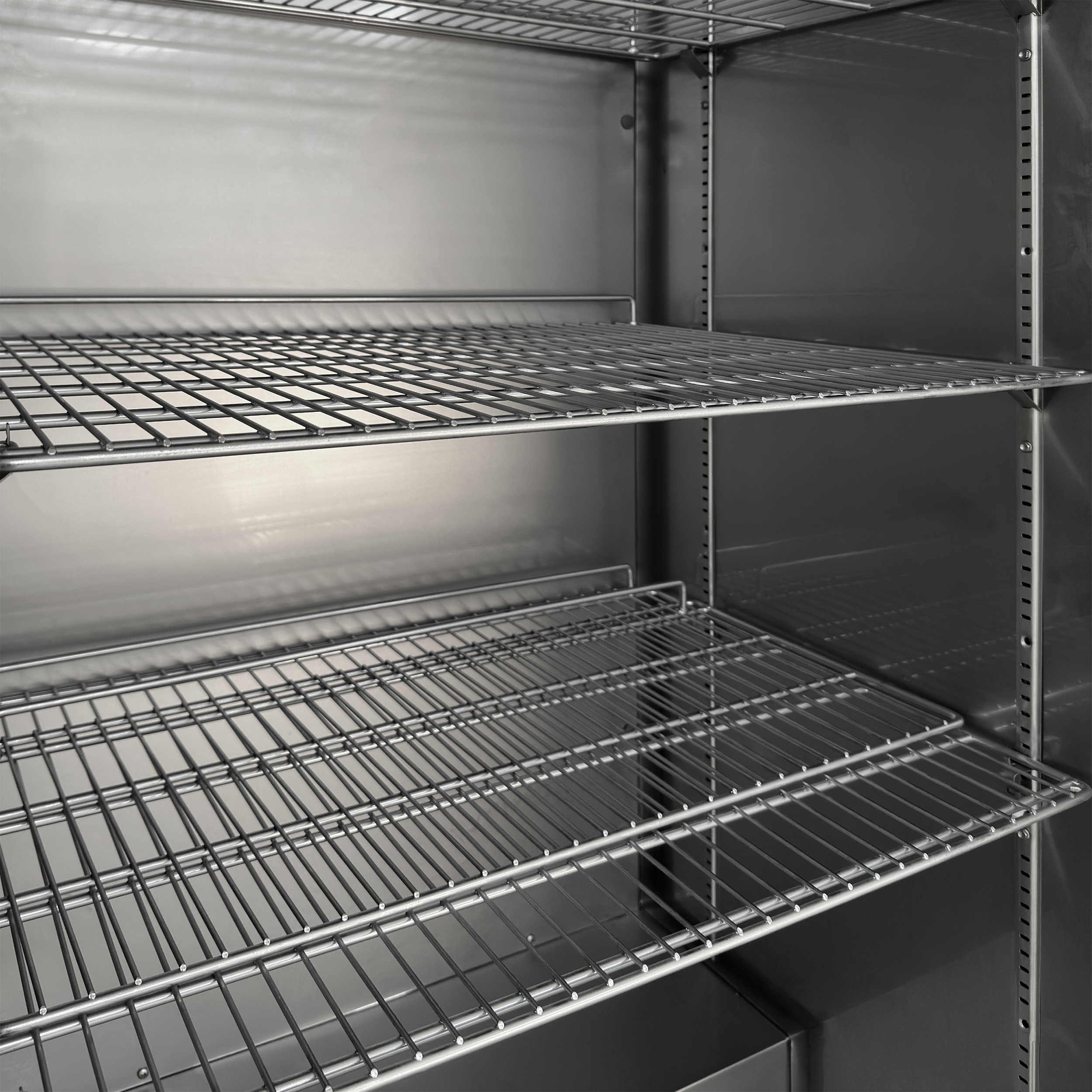 Mrazicí skříň UF-SS nabízí vysokou kvalitu a spolehlivost za konkurenceschopnou cenu. Má moderní design s odolným interiérem a exteriérem z nerezové oceli a integrovaným madlem po celé délce dvířek. Má ventilované chlazení a nastavitelné police GN2/1. Teplotu lze nastavit na snadno ovladatelném digitálním displeji termostatu.