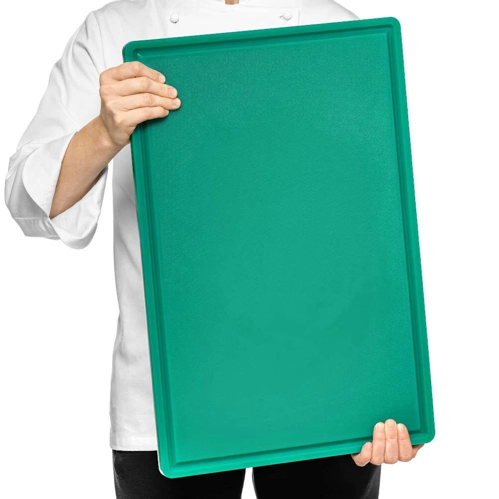 - Systém HACCP – deska byla navržena s ohledem na minimalizaci rizika křížové kontaminace. Zelená barva označuje určení pro zeleninu a ovoce, což umožňuje udržovat nejvyšší úroveň hygieny ve společném stravování.