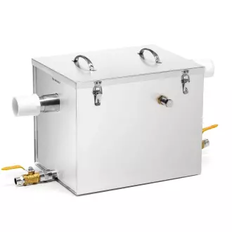 Odlučovač tuků Forgast o objemu přibližně 35,4 litru. Malé kompaktní rozměry. Zabraňuje ucpávání odtoků mastnotou. Pro vnitřní použití v myčkách nádobí.