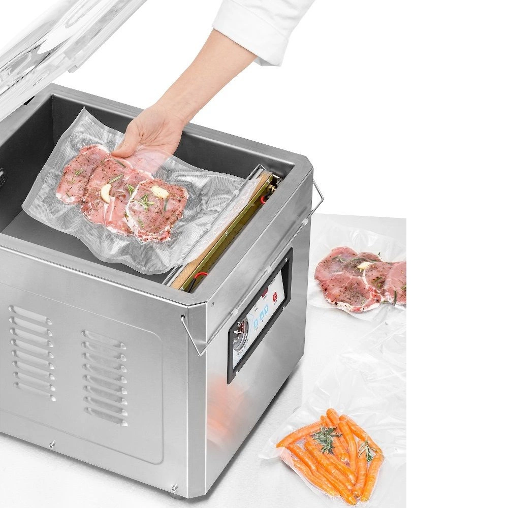Komorová vakuová balička Forgast FG03435 je profesionální zařízení určené k balení potravinových produktů ve vakuových podmínkách. Její klíčové vlastnosti jsou dlouhá, 35centimetrová svařovací lišta a průhledné víko komory, které zajišťují přesnost a pohodlí při používání. Je to ideální volba pro gastronomii, obchody, zpracovatelské provozy a cateringové firmy, kde záleží na čerstvosti a trvanlivosti produktů.