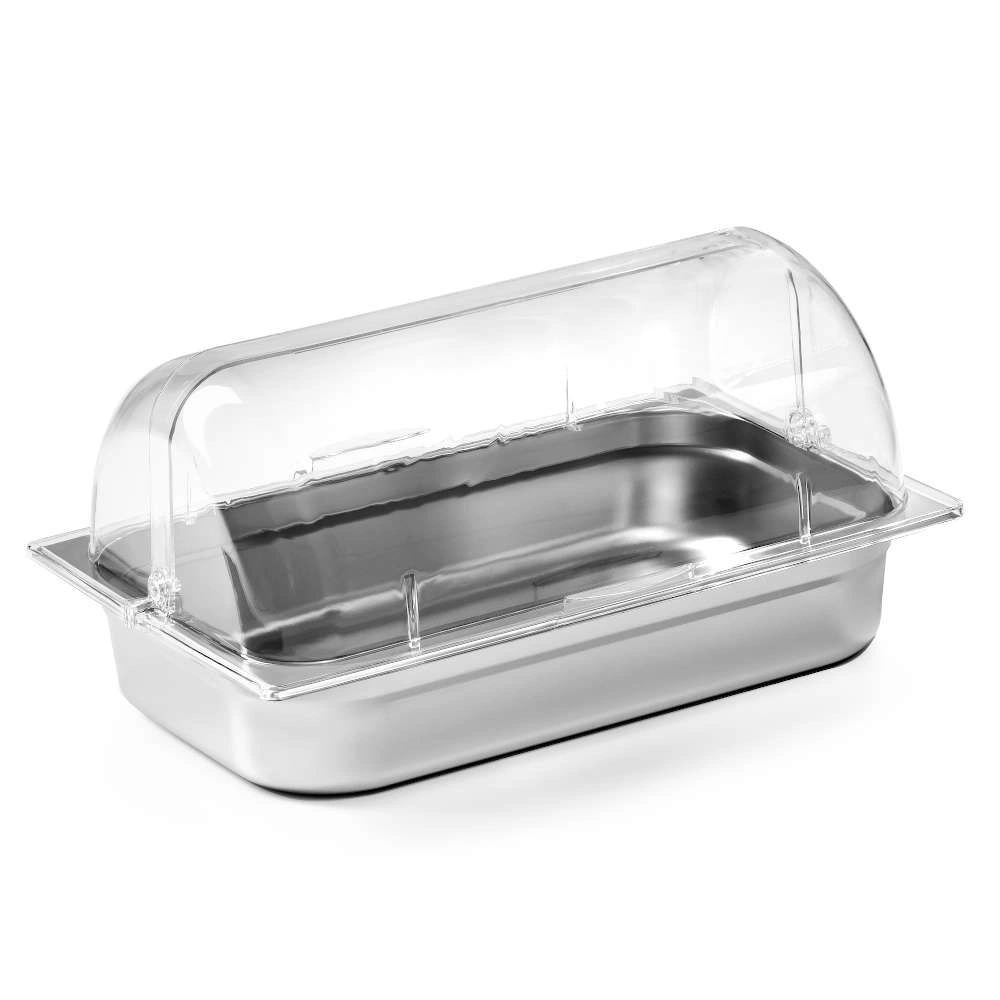 Roll-top poklop GN 1/1 z polykarbonátu FORGAST FG03245 je ideální pro profesionální kuchyně, bufety, restaurace i cateringové společnosti. Umožňuje hygienické skladování uzenin, sýrů, dortů či čerstvé zeleniny a chrání je před vysycháním a znečištěním. Průhledná konstrukce usnadňuje zákazníkům výběr pokrmů bez nutnosti otevírání poklopu, což urychluje obsluhu a pomáhá udržovat vysoký hygienický standard.