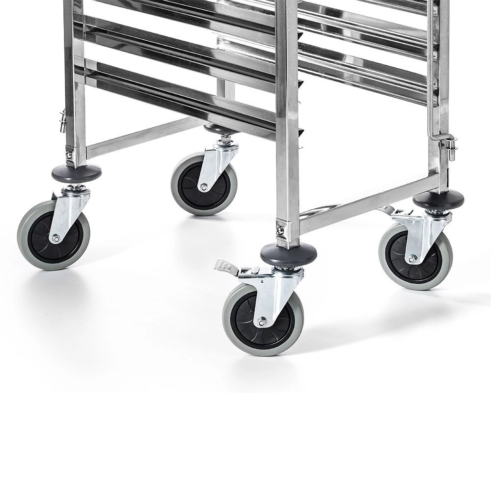 V balení jsou obsaženy všechny potřebné prvky pro samostatnou montáž, což umožňuje rychlou přípravu vozíku k použití. Čtyři otočná kolečka, z toho dvě s brzdami, umožňují snadné manévrování i v přeplněných kuchyňských prostorech a stabilní postavení při nakládání nebo vykládání GN nádob.