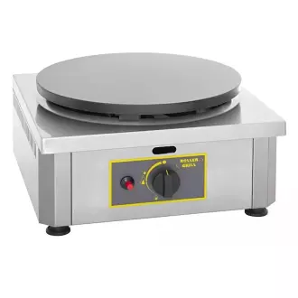 Palačinkovač ROLLER GRILL CSG 400 je určen pro profesionální použití v gastronomii – ideální pro provozovny nabízející palačinky, food trucky, hotelové bufety nebo při venkovních akcích. Hladký povrch desky minimalizuje riziko připalování těsta, takže příprava jak tenkých francouzských crêpes, tak i silnějších bramborových placek je snadná a rychlá. Zařízení má stabilní konstrukci, odolný kryt a intuitivní ovládací panel. V sadě je praktická pomůcka na roztírání těsta, což výrazně usnadňuje práci a umožňuje dosáhnout dokonale rovného povrchu palačinek.