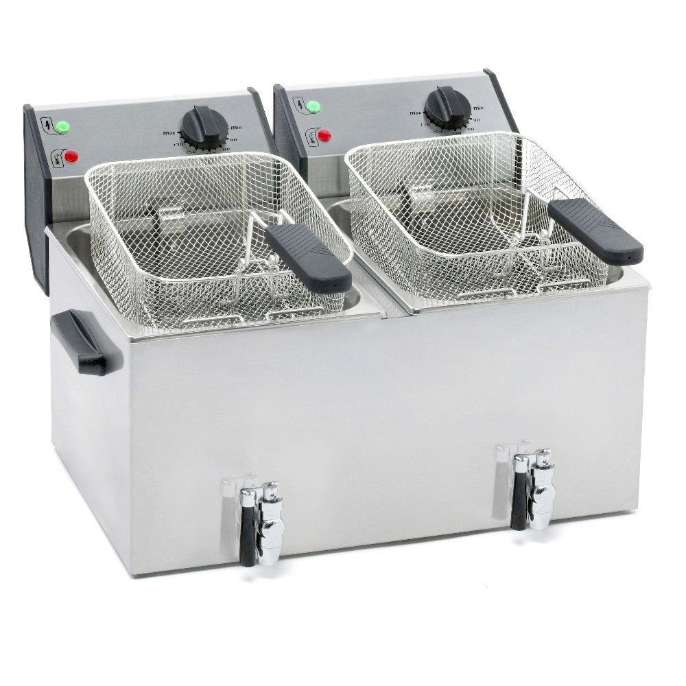 Elektrická dvoukomorová fritéza s kohoutkem - objem 2x8 l
