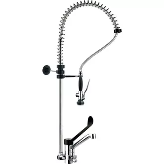 Popis k výrobku: Stojánková dřezová baterie s loketní pákou, výtokem a sprchou