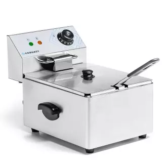 Elektrická fritéza 8 l FORGAST FG09008 je profesionální zařízení určené pro intenzivní provoz v gastronomickém průmyslu. Vyniká robustní konstrukcí z nerezové oceli a možností rychlého smažení velkého množství díky objemu 8 litrů. Ideální je pro restaurace, fast foody a cateringové provozy, kde záleží na výkonu, bezpečnosti a snadné údržbě.