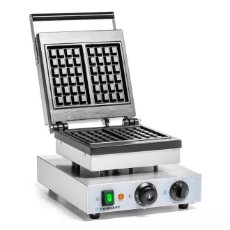 Elektrický vaflovač FORGAST FG09700 je profesionální zařízení určené pro rychlou a pohodlnou přípravu obdélníkových vaflí. Vyznačuje se odolnou konstrukcí z nerezové oceli a litinovými, teflonovanými topnými deskami, které zajišťují dlouhou životnost a snadné čištění. Ideálně se hodí pro použití v gastronomii, kavárnách, cukrárnách i během cateringových akcí.