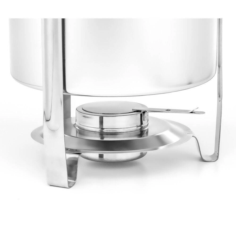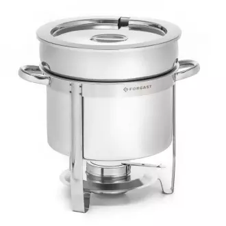 Kulatý ohřívač na polévku 7 l na palivo FORGAST FG03107 je profesionální gastronomické zařízení, které se vyznačuje velkou kapacitou a provedením z nerezové oceli. Je určen k servírování horkých polévek a jídel na různých akcích, jako jsou bankety, konference, svatby nebo venkovní oslavy. Jeho největšími přednostmi jsou absence nutnosti připojení k elektrické síti a elegantní stříbrný vzhled, který podtrhne estetiku každého bufetu.