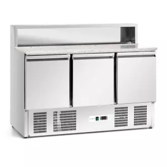 Chladicí stůl na pizzu, 3-dveřový, 400 l, s nástavbou