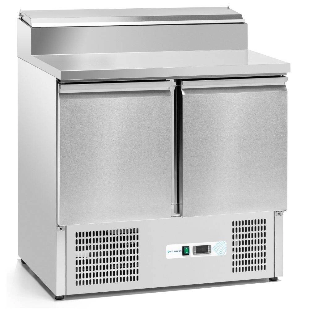 Chladicí stůl salátový dvoudveřový FORGAST FG07402 najde uplatnění v profesionálních kuchyních restaurací, hotelových bufetech, salátových barech, pizzeriích nebo fast food provozech. Umožňuje skladování a prezentaci surovin v optimální teplotě, zajišťuje zároveň snadný přístup a pohodlí personálu při práci. Díky pevné konstrukci a kvalitním materiálům se zařízení osvědčí i při intenzivním každodenním používání.