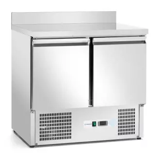 Chladicí stůl je vybaven dvěma širokými dveřmi, což umožňuje volný přístup do celého vnitřku. Díky objemu 257 litrů je zařízení ideální pro profesionální kuchyně, kde je nutné skladovat velké množství surovin při kontrolované teplotě. Toto řešení umožňuje rychlé vyjímání a vkládání nádob, což je obzvlášť důležité při intenzivní práci v restauracích, barech nebo jídelnách.
