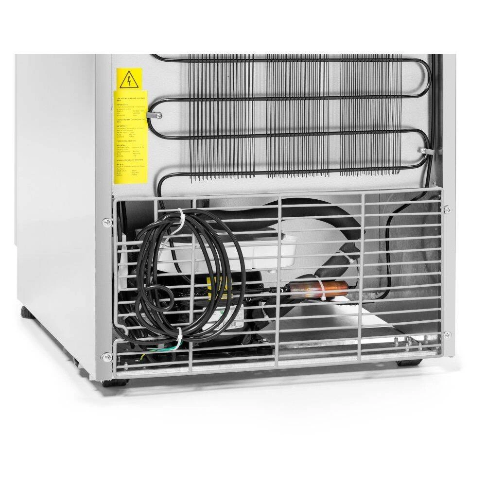 Chladicí skříň FORGAST FG07235 byla navržena s ohledem na intenzivní používání v gastronomii. Vnitřek je vyroben z materiálu odolného vůči znečištění, což výrazně usnadňuje údržbu čistoty. Integrované vodicí lišty umožňují pohodlné rozmístění polic a prosklené dveře s magnetickým, snadno vyměnitelným těsněním zaručují těsnost a minimalizují ztráty energie. Pevný směr otevírání dveří umožňuje snadnou obsluhu i v omezených kuchyňských prostorech. Součástí balení jsou tři roštové police a jedna přídavná police na dno, což umožňuje flexibilní organizaci vnitřního prostoru podle typu skladovaných produktů.