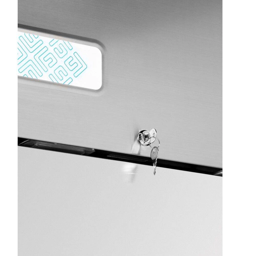 - Pevná konstrukce z nerezové oceli – Jak vnitřek, tak vnější část jsou vyrobeny z vysoce kvalitní nerezové oceli AISI 304, která zaručuje odolnost vůči korozi a intenzivnímu používání. Zaoblené rohy komory usnadňují čištění a udržení vysoké úrovně hygieny.