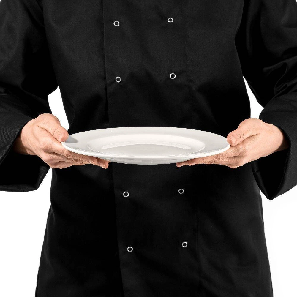 - Porcelana z domieszką aluminy – Dzięki zawartości 30% tlenku glinu, talerz charakteryzuje się wyjątkową odpornością na obicia i uszkodzenia mechaniczne. To rozwiązanie idealne dla miejsc o dużym natężeniu użytkowania, takich jak sale bankietowe czy stołówki hotelowe.