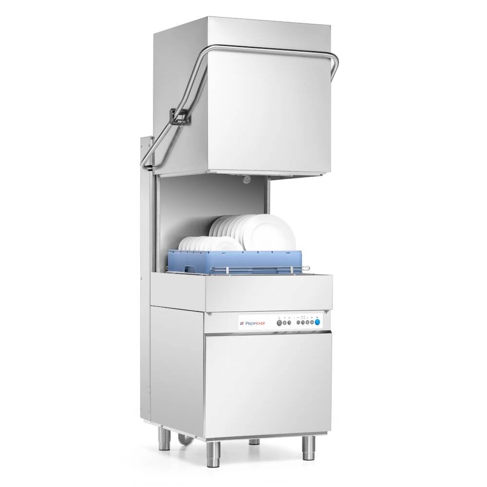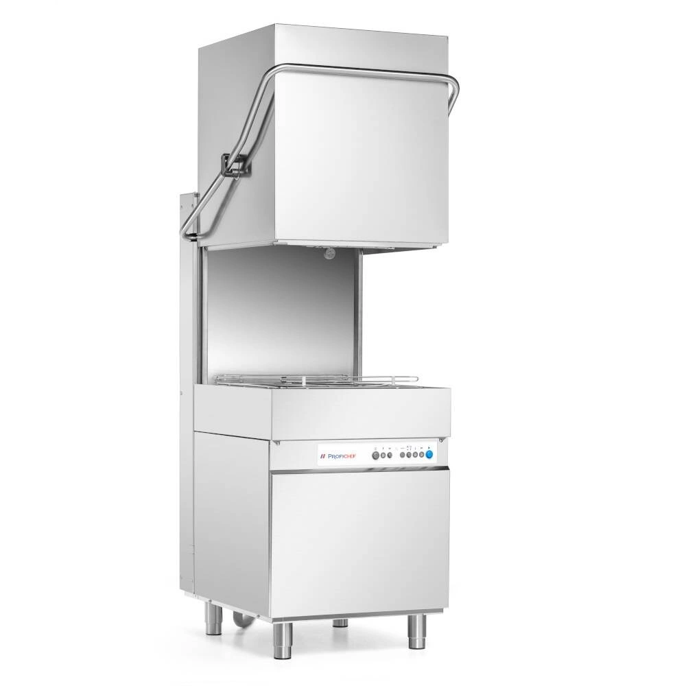 Gastronomická myčka nádobí s víkem a odpadovým čerpadlem ProfiChef PCZ-02101 je profesionální zařízení určené pro intenzivní provoz ve velkých gastronomických provozech, jako jsou restaurace, jídelny, hotely nebo svatební sály. Vyznačuje se vysokou výkonností a možností mytí a oplachování velkých kusů nádobí, což umožňuje efektivní obsluhu i těch nejnáročnějších kuchyní. Zařízení je vybaveno automatickými dávkovači prostředků a výkonným odpadovým čerpadlem, což zaručuje pohodlí a úsporu času při každodenní práci.