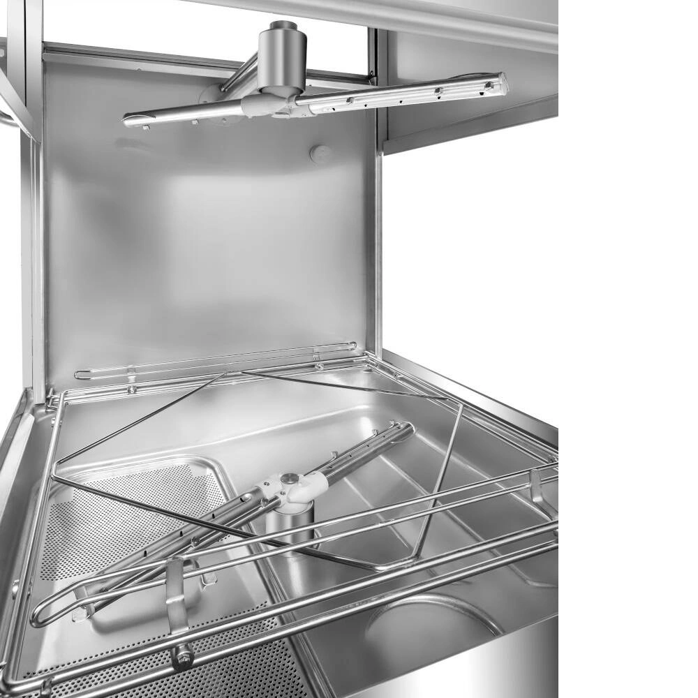 Zařízení je určeno pro práci v provozech, kde je důležitá rychlost a spolehlivost – od restaurací a barů po školní a mateřské kuchyně. Díky použití profesionálních dávkovačů oplachového a mycího prostředku zajišťuje myčka optimální dávkování chemikálií a účinné čištění i silně znečištěného nádobí. Automatické řízení mycího cyklu a možnost připojení na teplou nebo studenou vodu umožňují přizpůsobit zařízení individuálním potřebám každé kuchyně.
