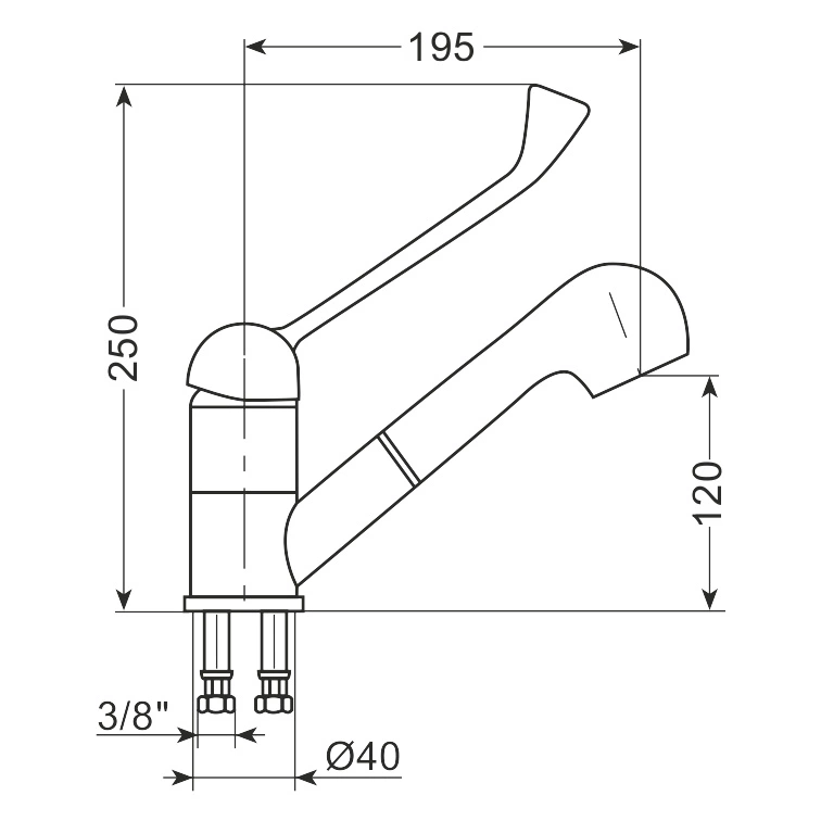 Kolenová umyvadlová baterie s výsuvnou výpustí o délce 1 m AG-232. Připevňuje se k umyvadlu. Potřebný montážní otvor 40 mm. Keramická hlavice. Chromovaná ocelová páka.