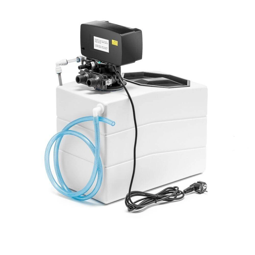 Zařízení je vybaveno prostorným zásobníkem na regenerační sůl s kapacitou 20 kg, což umožňuje dlouhodobý provoz bez nutnosti častého doplňování. V praxi to znamená pohodlí při používání a úsporu času v každodenním provozu. Změkčovač automaticky provádí proces regenerace a uživatel pouze kontroluje hladinu soli v zásobníku. Díky tomuto řešení je zařízení téměř bezúdržbové, což je zvláště důležité v místech s vysokým pracovním zatížením.