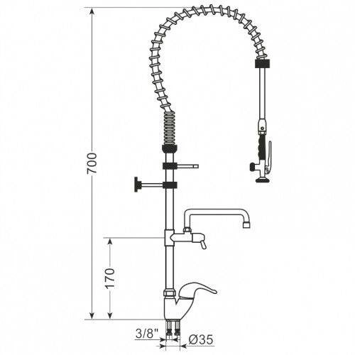 Stojánková baterie s podložkou a výlevkou AG-100. . Připojeno k umyvadlu. Vyžaduje montážní otvor o průměru 33-35 mm. Nástěnný držák. Keramické hlavice. Izolovaná vyztužená hadice z nerezové oceli na koncích. Tělo z pochromované mosazi. Knoflíky včetně páky z chromované oceli. Chromovaná ocelová pružina. Otočná výtoková trubice.