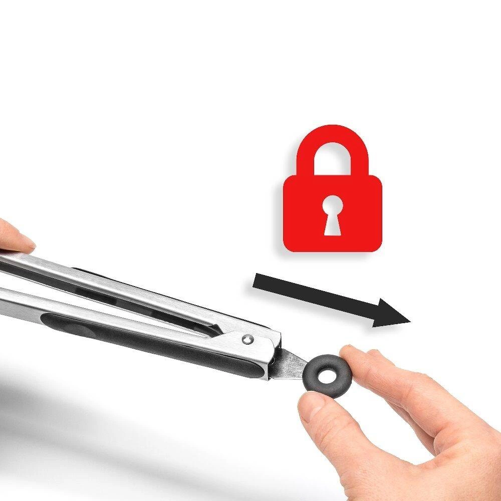 - Uzamykací pojistka – usnadňuje skladování kleští, umožňuje je zablokovat v zavřené poloze. Toto řešení ocení zejména ti, kteří dbají na pořádek v kuchyňské zásuvce nebo potřebují vzít nástroj s sebou do terénu, například při cateringu.