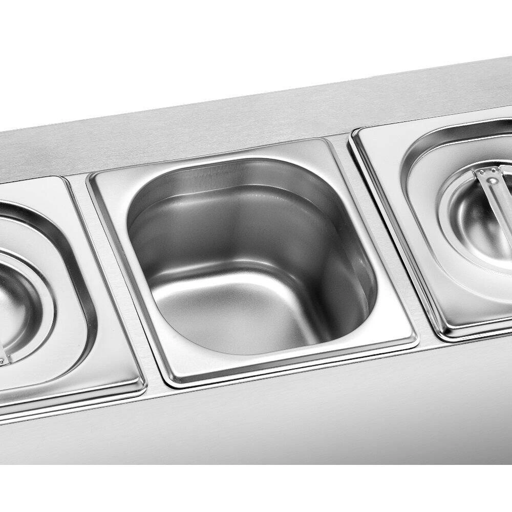 - Kompletní vybavení: Součástí balení jsou čtyři GN 1/6 nádoby o hloubce 10 cm s víky, což umožňuje pohodlné skladování a prezentaci různých ingrediencí.