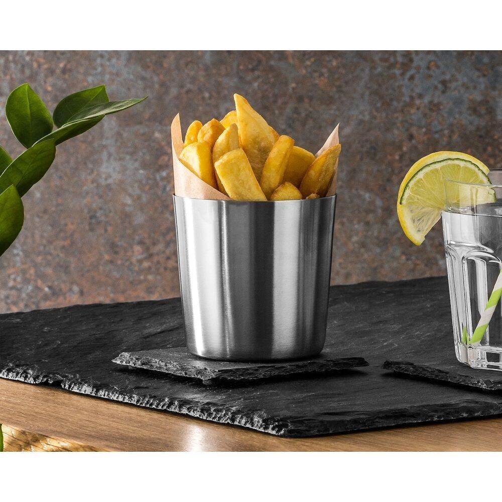 Mini miska, saténový ocelový kelímek od společnosti Forgast ideální na malé porce, například chipsy. Miska pro zajímavé a originální uspořádání servírování občerstvení.