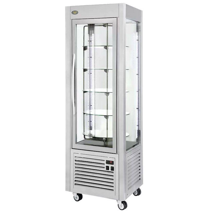 Chladicí otočná vitrína ROLLER GRILL RD 60 T je profesionální zařízení určené k prezentaci cukrářských výrobků, jako jsou dorty nebo zákusky. Zařízení se vyznačuje dynamickým chladicím systémem a pěti otočnými talíři, což umožňuje atraktivní vystavení produktů. Skvěle se hodí do cukráren, kaváren a hotelů, kde záleží nejen na čerstvosti, ale také na efektní prezentaci výrobků.