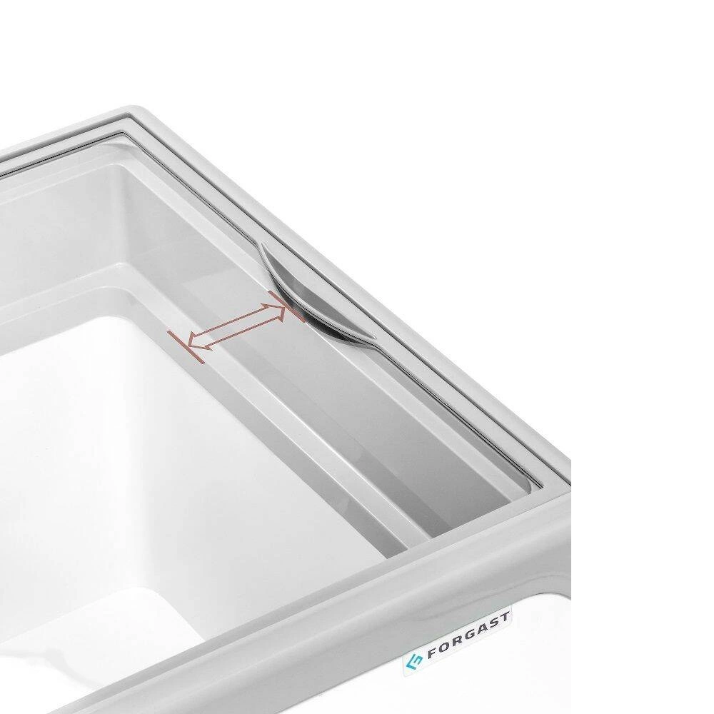 Truhlicová mraznička s plochým proskleným víkem obj. 394 l FORGAST FG08500