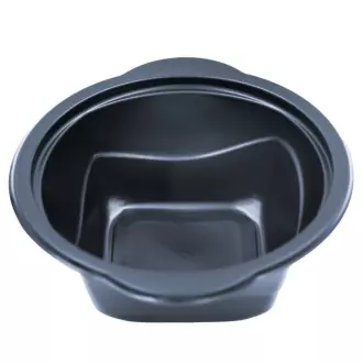 Nádoba na polévku o objemu 500 ml cm pro podávání polévek s sebou. Nádoba je vyrobena z černého recyklovatelného polypropylenu. Určeno pro uzavírání jídla s sebou v uzavíracích strojích.