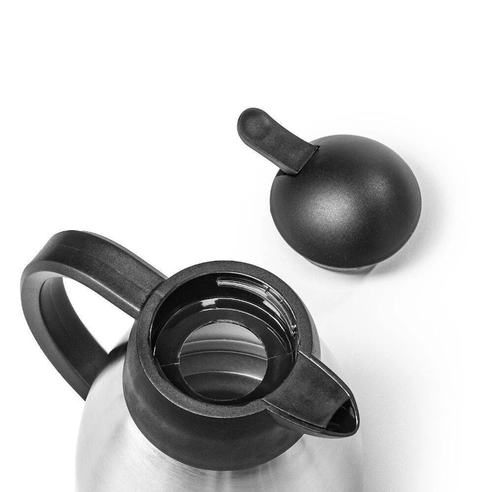 - Ergonomická plastová rukojeť – zaručuje jistý úchop a pohodlné přenášení, i když je termoska plná. To je zvláště důležité při servírování nápojů v konferenčních místnostech nebo při obsluze hostů na akcích.