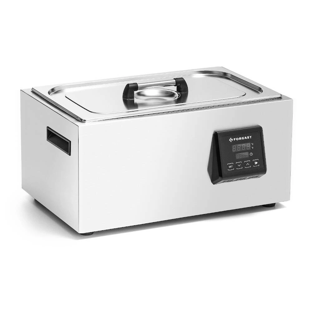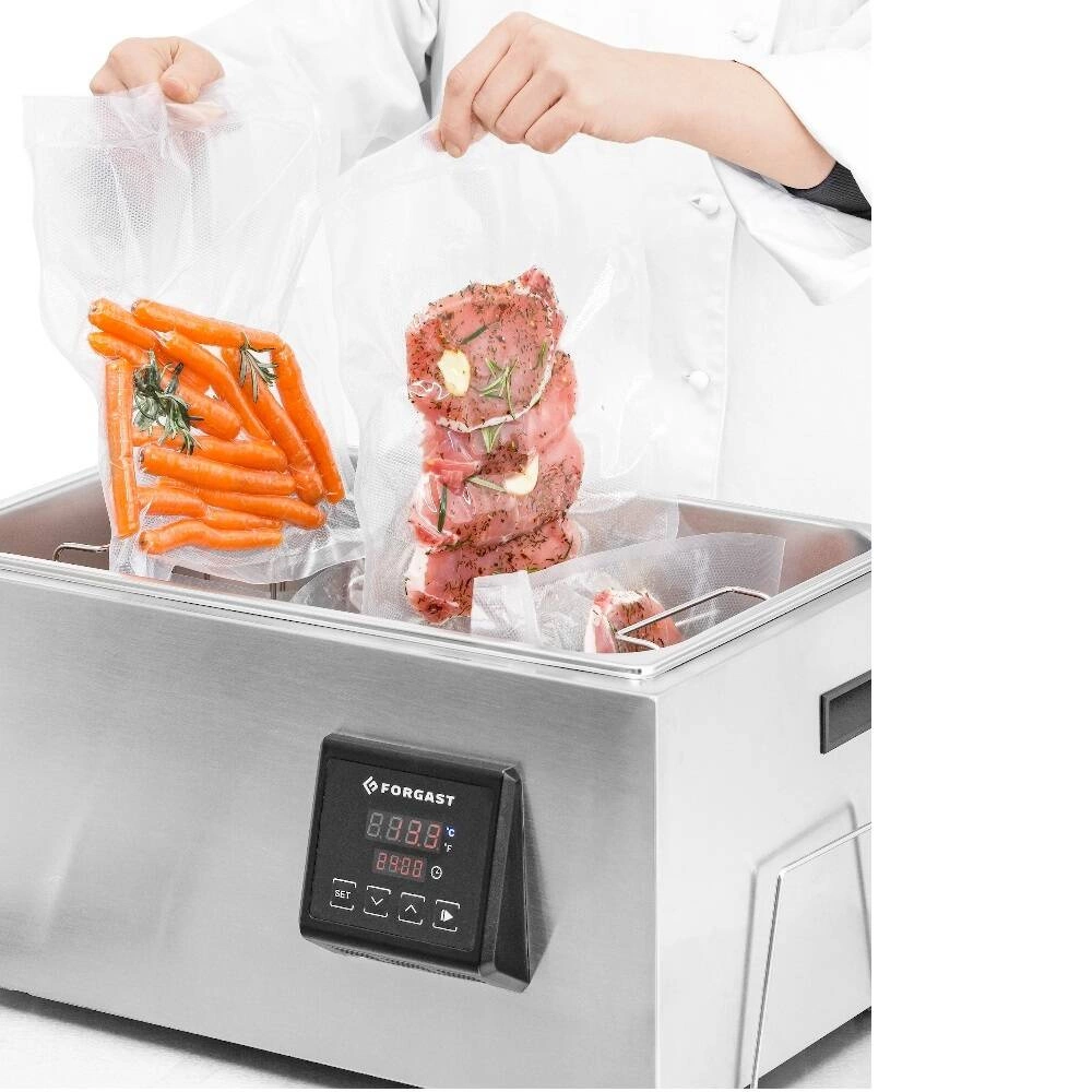 Zařízení na vaření ve vakuu Sous Vide, bemarový cirkulační vařič o objemu 28 litrů značky FORGAST je profesionální kuchyňské vybavení určené pro přesnou tepelnou úpravu potravin. Jeho hlavní přednosti jsou přesná kontrola teploty a velká kapacita, díky čemuž se skvěle hodí do restaurací, hotelů, cateringových firem i moderních domácích kuchyní. Cirkulátor umožňuje přípravu šťavnatých mas, ryb a zeleniny, přičemž zachovává jejich výživové hodnoty a přirozenou chuť.