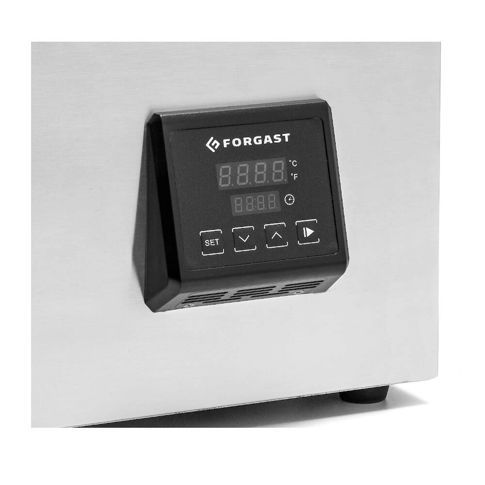 Bemarový cirkulátor FORGAST o objemu 28 litrů byl navržen s ohledem na profesionály, kteří očekávají spolehlivost a přesnost. Zařízení má prostornou nádrž vyrobenou z vysoce kvalitních materiálů, přesný ovládací panel s možností nastavení teploty a doby provozu a výkonný systém cirkulace vody, který zaručuje rovnoměrné zahřívání celého obsahu. Díky tomu lze připravovat pokrmy opakovaně se stejnou texturou a chutí. V balení je bemarový cirkulátor, stojan na sáčky je k dispozici samostatně jako příslušenství.