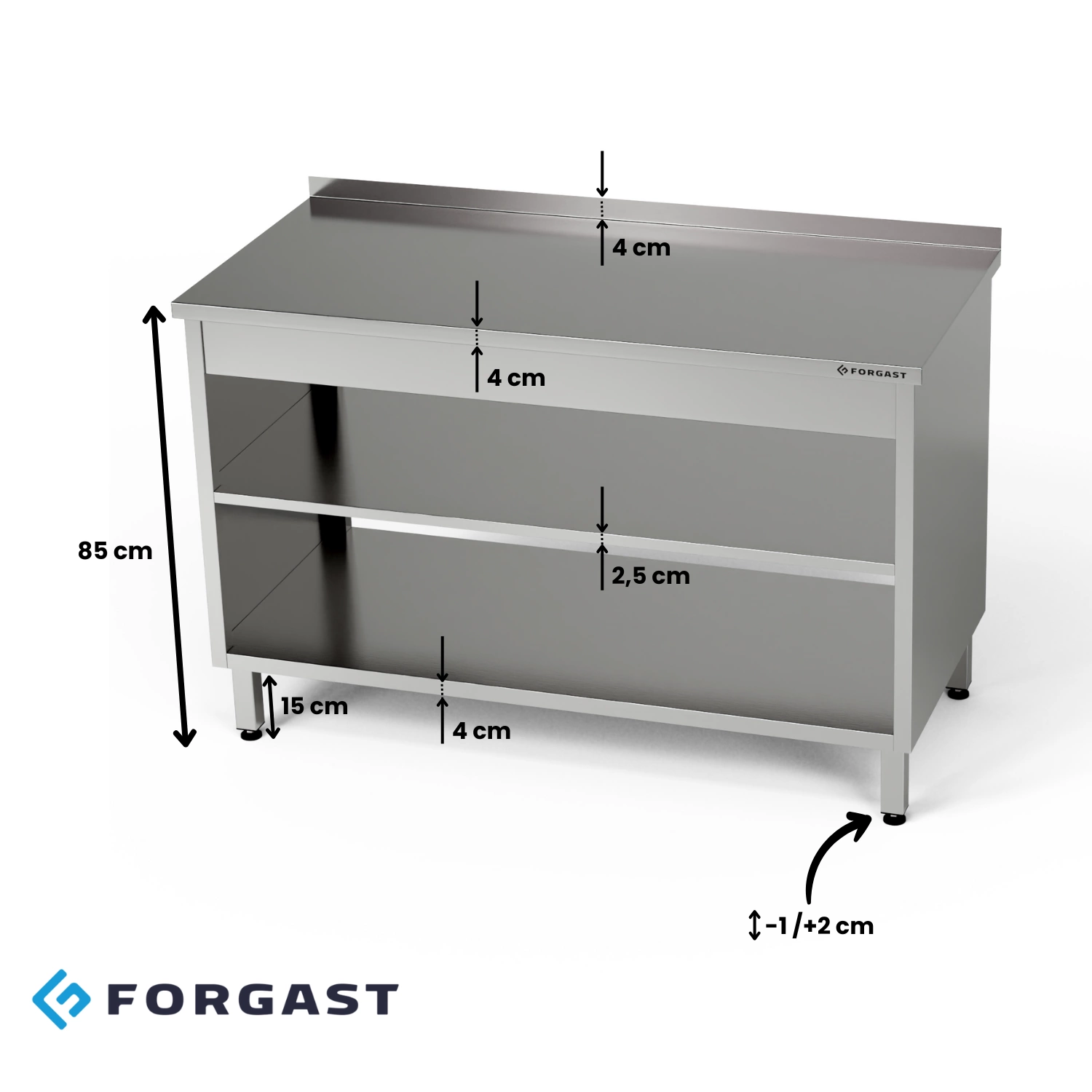 Stůl se standardně vyrábí se zadní hranou – dorazovou lištou vysokou přibližně 4 cm, která zabraňuje sklouznutí odpadu z pracovní plochy do mezery u stěny kuchyně. V závislosti na nastavení se doporučuje objednat pracovní stůl navíc s levým nebo pravým okrajem, aby se v kuchyni udržovala čistota.
