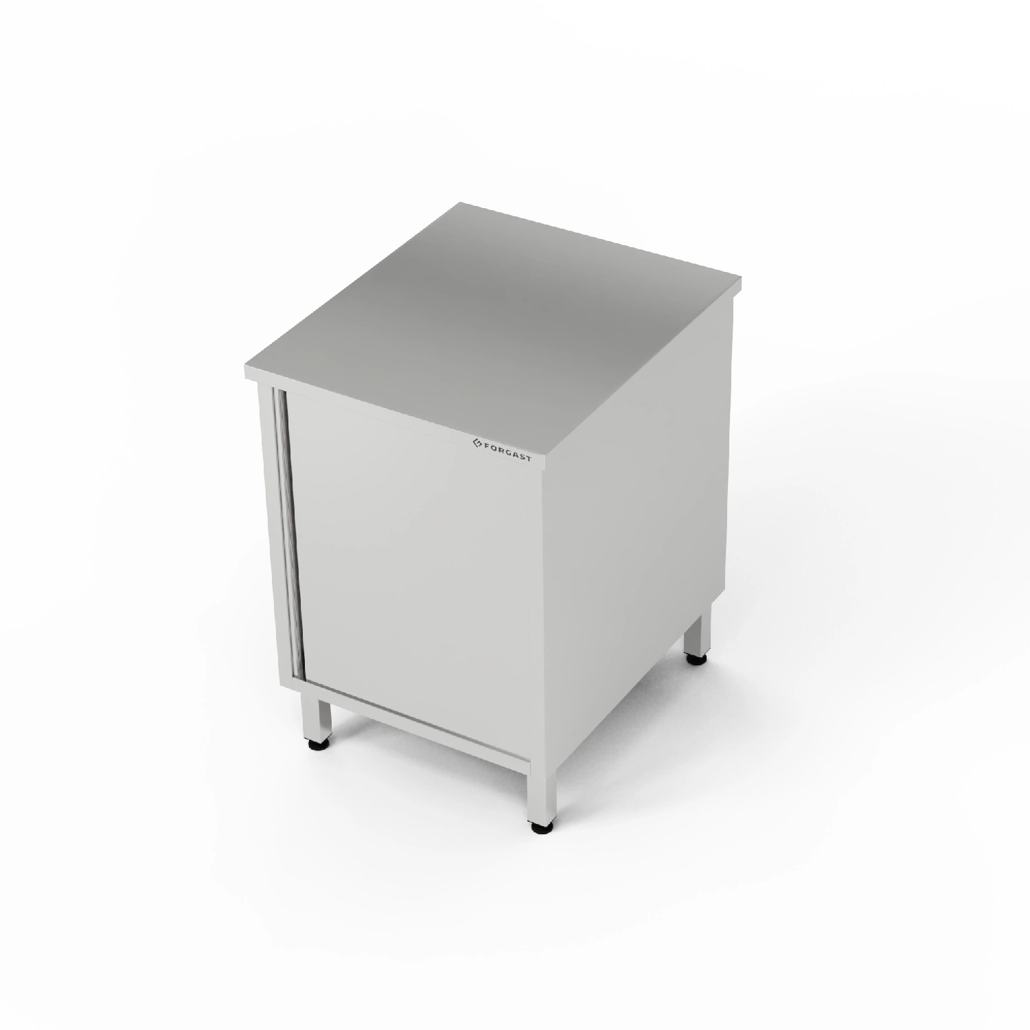 Pracovní stanice - skříňka s otevíracími dvířky, 60x60x85 cm. Uvnitř skříně je pólavice. Vyrobeno z nerezové oceli J4. Stó³³ může mít závěsy namontované na levé (L) nebo pravé (P) straně - uveďte prosím při objednávce.