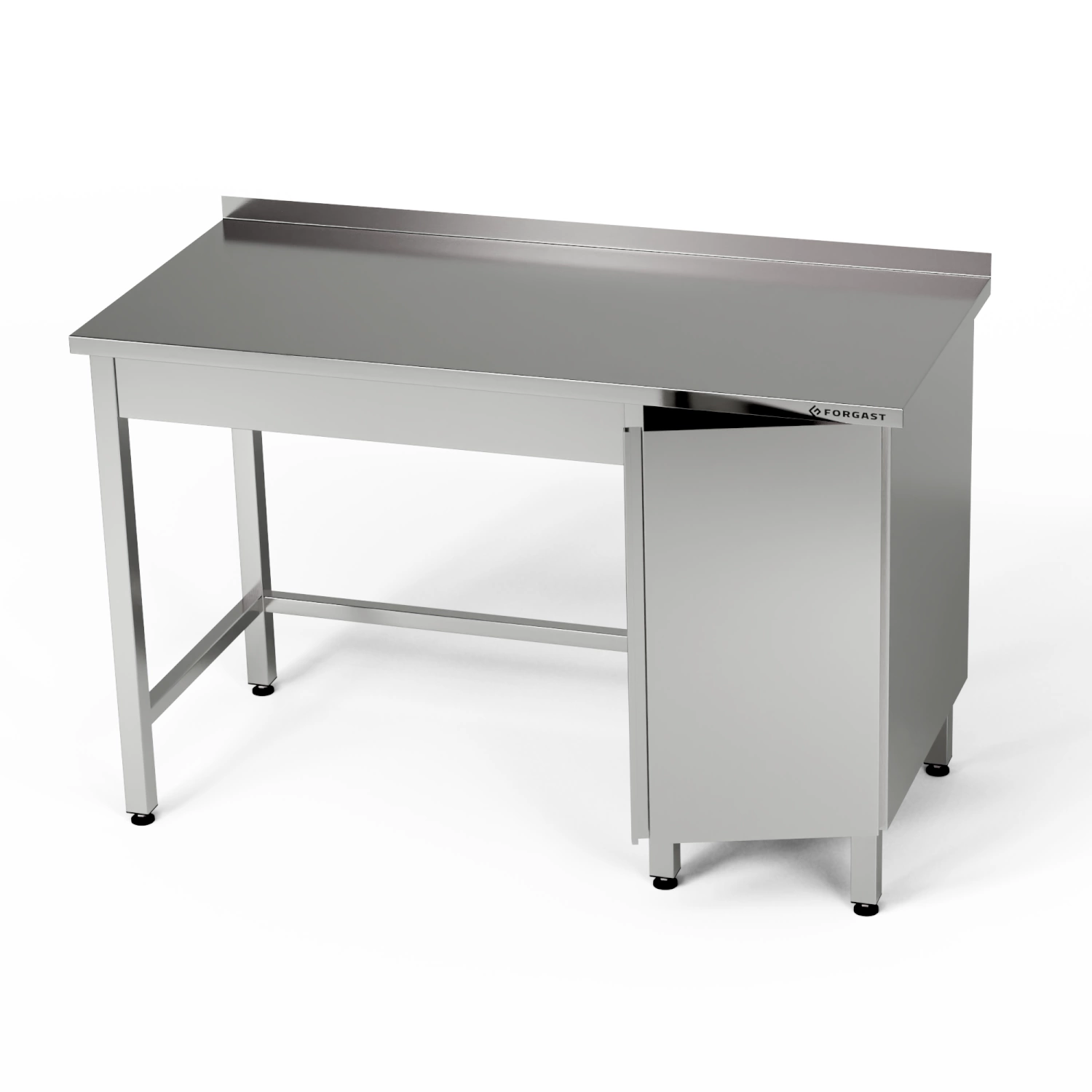 Pracovní stůl o rozměrech 190x70x85 cm s otevírací skříňkou s dvířky, vyrobený z nerezové oceli J4. Skříňka o délce 40 cm a šířce (hloubce) 60 cm může být umístěna vpravo nebo vlevo. Uvnitř skříňky półka.