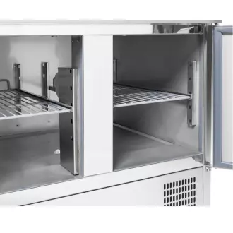 - Odolná konstrukce – Produkt je vyroben z vysoce kvalitních materiálů, které zajišťují odolnost vůči nízkým teplotám a intenzivnímu používání v gastronomických podmínkách. To zaručuje dlouhou životnost poličky i při každodenním zatížení.