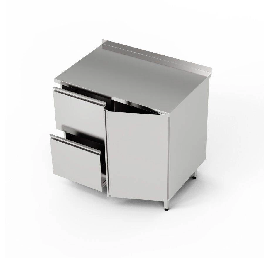 Nerezový pracovní stůl se skříňkou a zásuvkovým blokem 100x70x85 cm