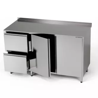 Nerezový pracovní stůl se skříňkou a blokem zásuvek 140x70x85 cm