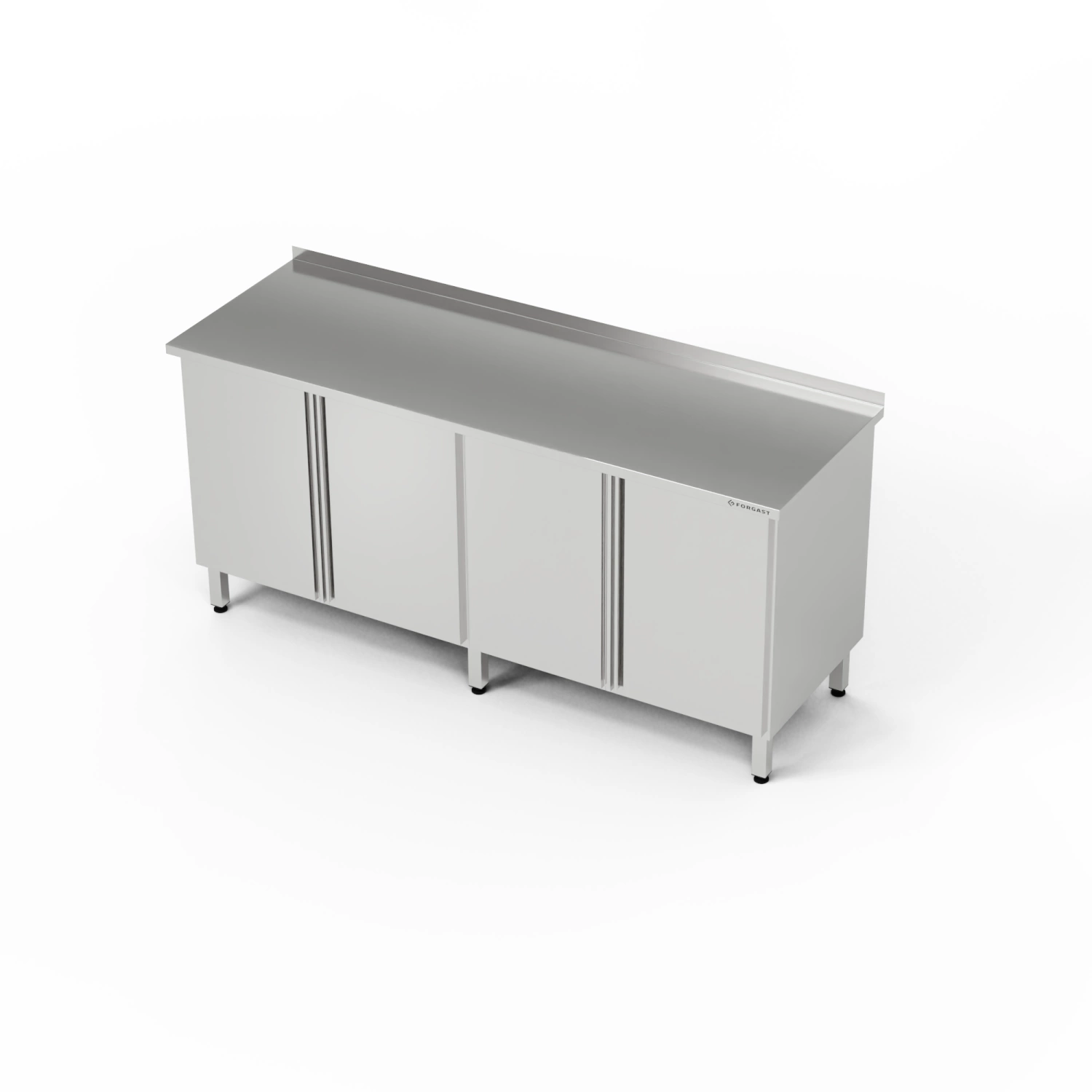 Pracovní stanice o rozměrech 200x70x85 cm se 2 skříňkami s otevíracími dvířky z nerezové oceli J4. Uvnitř skříněk je półka.