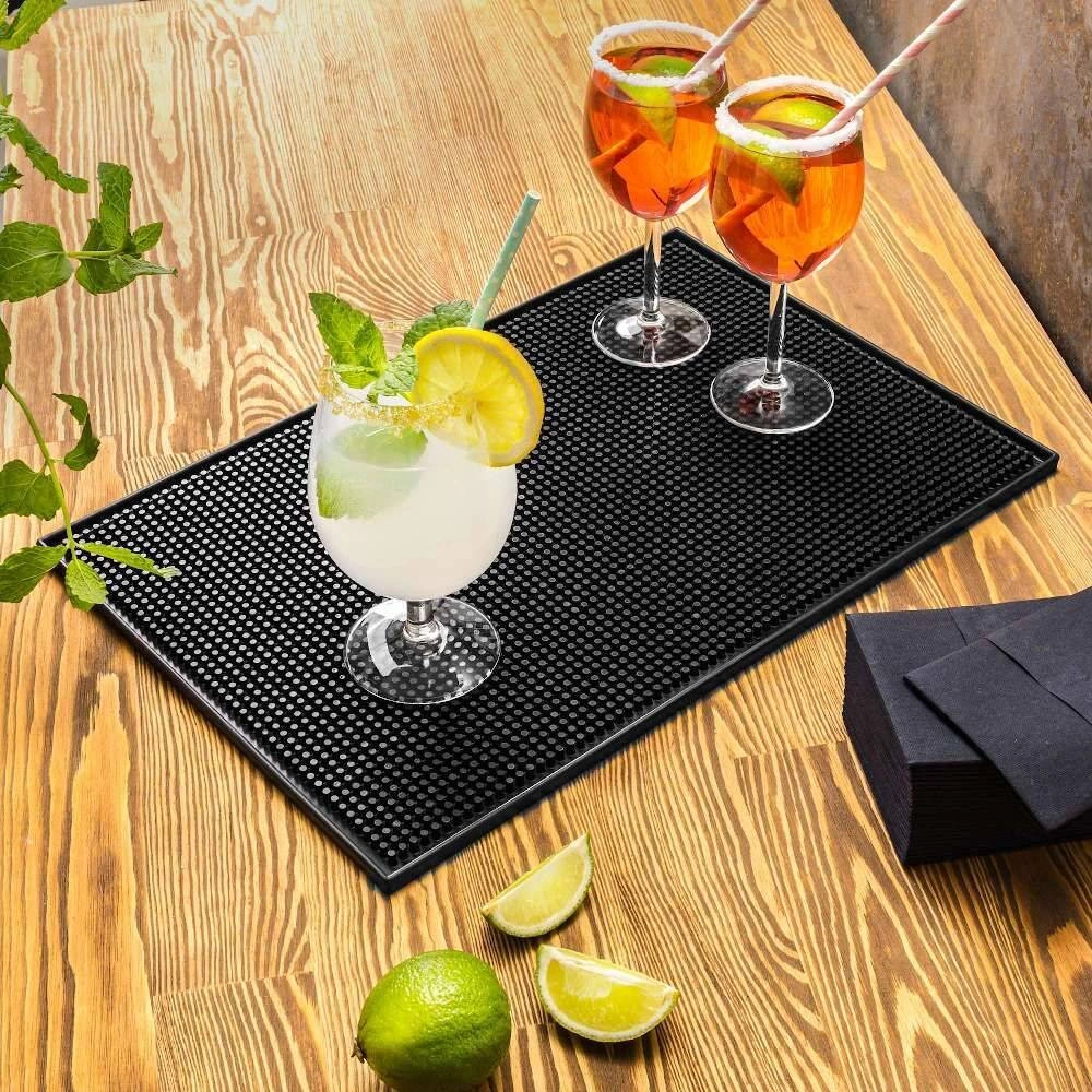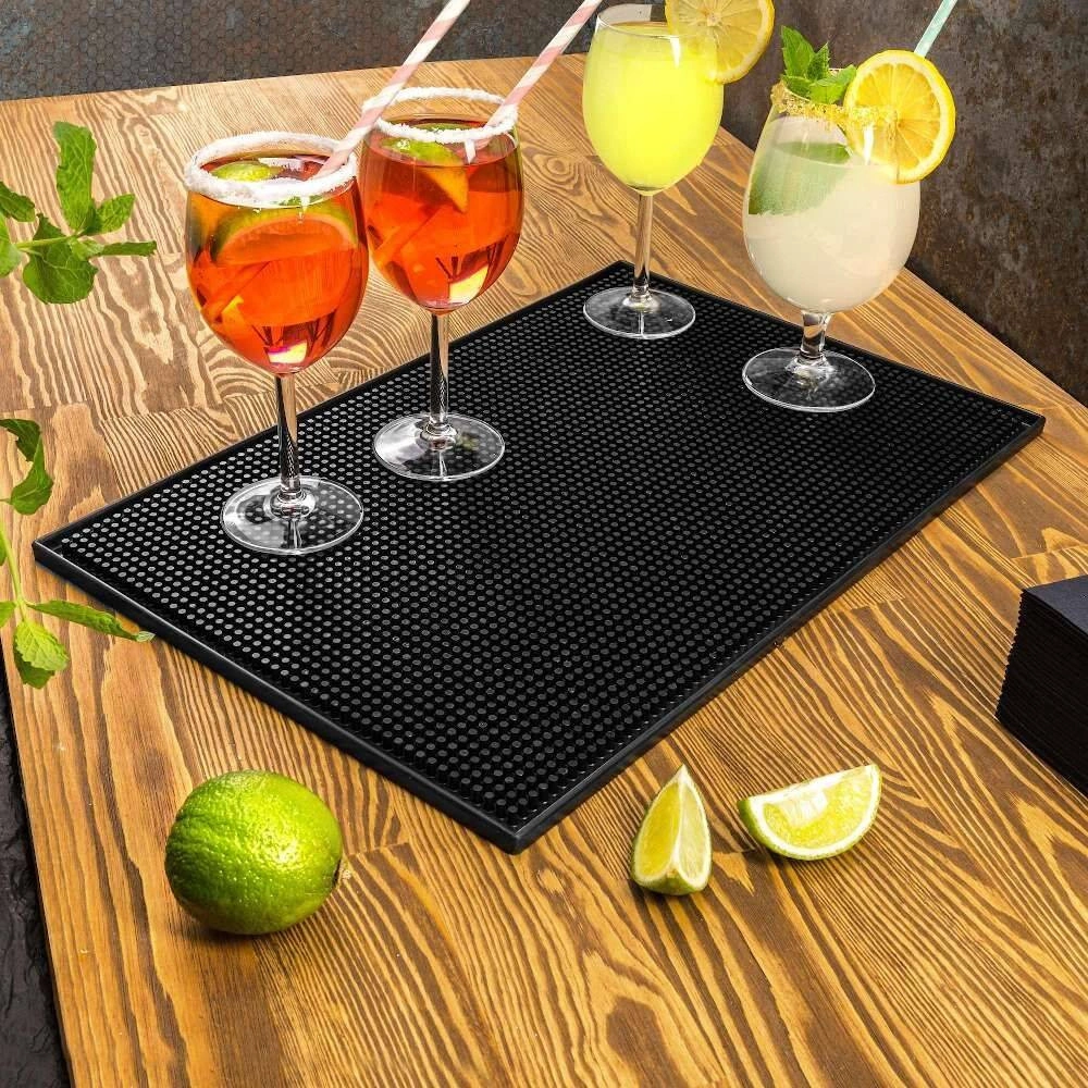 Barová podložka 45x30 cm FORGAST FG11422 je praktické příslušenství určené pro profesionální bary, restaurace i domácí bary. Vyznačuje se protiskluzovým povrchem a klasickou černou barvou, díky čemuž zajišťuje bezpečnost a elegantní vzhled pracovního místa barmana. Skvěle poslouží při přípravě drinků, chrání pracovní desku před rozlitím a poškozením.